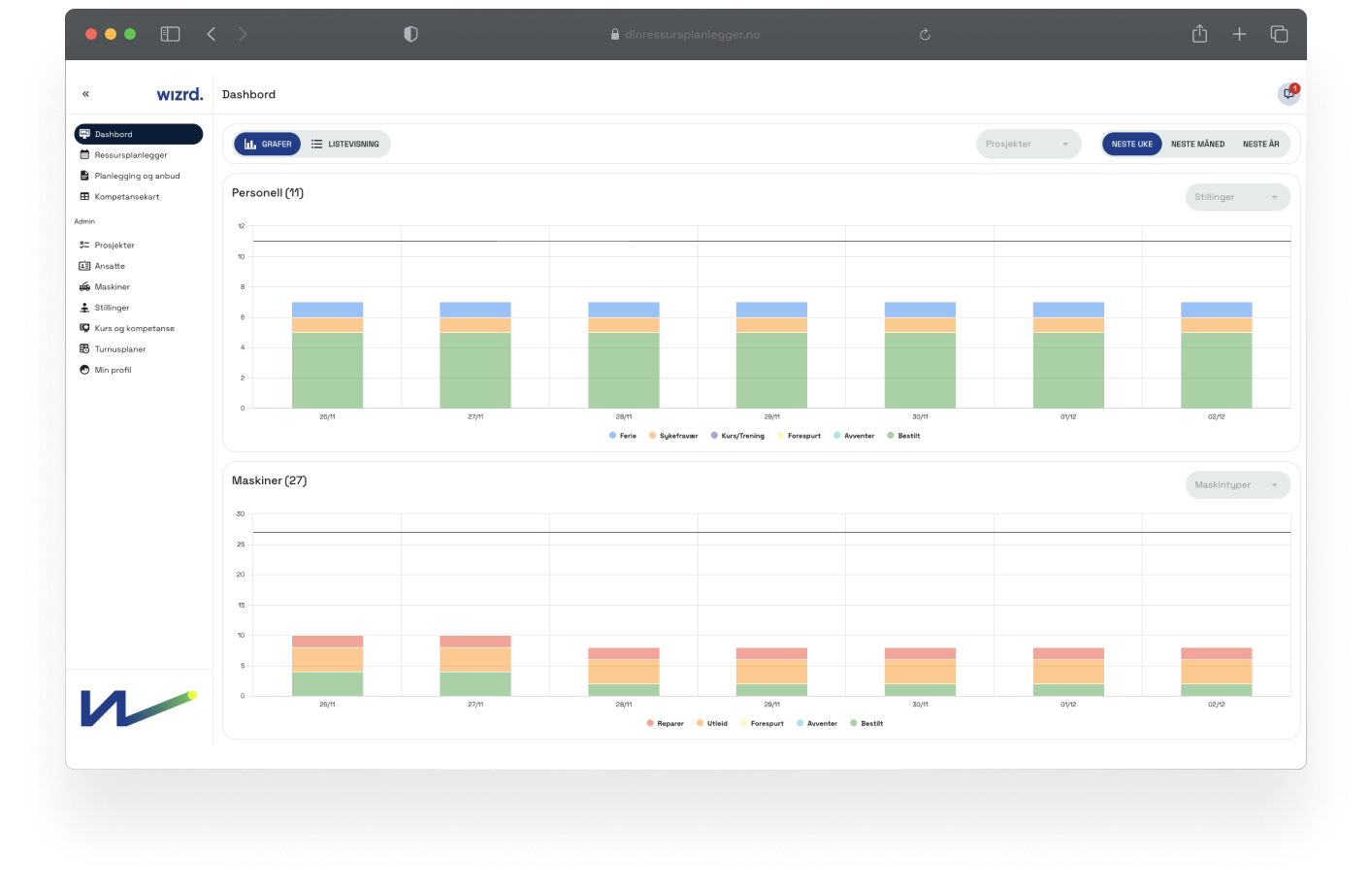 Med din egen digitale ressursplanlegger får du full kontroll på hvor folk, maskiner og utstyr befinner seg, og hva de skal gjøre, uansett om du sitter på kontoret eller står midt ute i feltet.